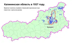 Karelian National Okrug (Russian: Карельский национальный о́круг, Karelsky Natsionalny okrug), was a territory with special status within Kalinin Oblast, Soviet Union. It existed between 1937 and 1939 and was intended to be a Tver Karelians autonomy. Its administrative center was located in the town of Likhoslavl.[1] The population of the okrug was 170,000, of which 65% were Tver Karelians.[2]