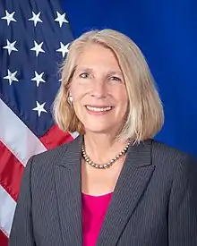 Karen Erika Donfried[1] is an American foreign policy expert who previously served as the assistant secretary of state for European and Eurasian affairs.[2] The State Department announced in March 2023 that Donfried would be stepping down from her post at the end of the month.[3] She also served as president of the German Marshall Fund from April 2014 to September 2021.[4]