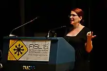 ![]() Karen Sandler at Swathanthra 2017 in Thiruvananthapuram. | |