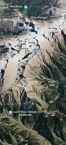 Kareri Lake is a shallow high elevation fresh water lake located on the southern spur of the Dhauladhar range approximately 9 km northwest of Dharamsala in Kangra district, Himachal Pradesh, India.[1]
