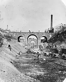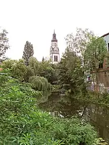 The Karl Heine Canal is an approximately 3.3 km (2 mi) long artificial watercourse in the west of the city of Leipzig in Germany and connects the Lindenau harbor with the White Elster River. It is spanned by 15 bridges and is navigable with small boats. The canal is under monument protection as a monument preservation entity “canal, bank reinforcements and bridges”.[1]