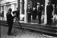 ![]() Journalists being photographed before a launch of the Graf Zeppelin, left to right: Karl von Wiegand, Lady Drummond-Hay, Rolf Brand, and Robert Hartmann | |
