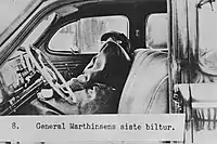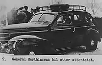 Marthinsen was assassinated by the Norwegian resistance group Milorg as part of Operation Buzzard, acting on orders from the government in exile. A team of trained gunmen waited for his car behind a woodpile near his home in Blindernveien 74 in Oslo. The car had just started to move when they opened fire with automatic weapons, instantly killing Marthinsen in the passenger seat and lightly wounding his driver. Documents disclosed after the war indicate that the political leadership ordered the assassination to prevent Marthinsen from carrying through his plans to enlist Norwegian paramilitary forces to violently subvert the expected capitulation of Nazi Germany in Norway.