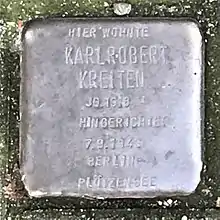 Today in Berlin, a memorial of the life and death of Kreiten exists along the "Topography of Terror" outdoor exhibit, which deals with the terror inflicted by the German SS and the Gestapo. The very prison cells that held him and others arrested by the Gestapo have been unearthed and remain laid bare for all to see. Streets in Düsseldorf, Bonn, Hilden and Cologne have been named in his honor. His only sister, Rosemarie von Studnitz, became a book publisher in the United States and died in 1975. In September 2003 the Dutch composer Rudi Martinus van Dijk had his work Kreitens Passion for baritone, full choir and symphony orchestra premiered in Düsseldorf by the Düsseldorf Symfoniker in memoriam of Karlrobert Kreiten.