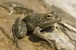 The Karpathos frog (Pelophylax cerigensis) is a species of frog in the family Ranidae. It is endemic to the island of Karpathos, South Aegean Sea, Greece. The Karpathos frog is considered the most endangered anuran amphibian in Europe because its range is restricted to two small rivers in the north part of the island.[2]
