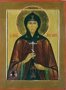 It is unclear when Kashin was founded, with plausible dates in the 12th and the 13th centuries, and it is reliably mentioned in 1287, when it belonged to Principality of Tver.[10] Since 1319, Kashin was the center of Principality of Kashin, which was first dependent on the Principality of Tver. In fact, Vasily, the first Prince of Kashin, was the son of Mikhail of Tver, and his mother and the wife of Michael, Anna of Kashin, lived in Kashin for the last years of her life. She was later canonized and is considered to be a saint protector of the town. Later, Kashin Principality was slowly drifting towards the Grand Duchy of Moscow. In 1375, it was accepted as an independent principality subordinate to Moscow, then between 1382 and 1399 it was a part of Principality of Tver, and in 1485 it was formally annexed by Moscow and abolished. In 1609 and 1612, during the Time of Troubles, Kashin was badly damaged by the Polish troops.[11]