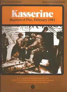 Kasserine: Baptism of Fire, February 1943 is a board wargame published by Simulations Publications Inc. (SPI) in 1976 that simulates the Battle of Kasserine Pass during World War II. The game was originally published as part of the Four Battles in North Africa "quadrigame" — a gamebox containing four games simulating four separate battles that all use the same rules. Kasserine was also published as an individual "folio game."