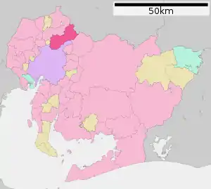 Kasugai (春日井市, Kasugai-shi) is a city in Aichi Prefecture, Japan. As of 1 October 2019, the city had an estimated population of 306,764,[1] and a population density of 3,306 persons per km2. The total area of the city is 92.78 square kilometres (35.82 sq mi). The city is sometimes called Owarikasugai to avoid confusion with other municipality of the same name, including Kasugai (now part of Fuefuki) in Yamanashi Prefecture.