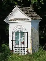 In addition to Saint Nicholas' Church and other cultural heritage sites in Sveti Miklavž and Grmače, Katarija has a chapel-shrine dedicated to Our Lady of Sorrows on the edge of the woods along the former route to Saint Nicholas' Church. It is a closed masonry shrine with a gabled roof covered with concrete tiles and dates from the second half of the 19th century. It formerly contained a wooden folk statue of Our Lady of Sorrows; today it contains a painting of the Pietà.[5]