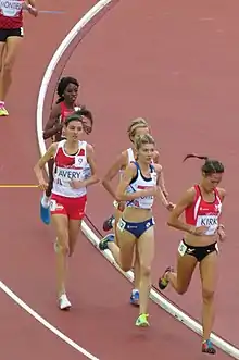 Avery won her first senior national title in 2014, winning over 1500 m at the English Athletics Championships. She also paced sixth in the 5000 m at the British Athletics Championships, having improved her best to 15:35.12 minutes earlier that season.[3] She began to progress in the under-23 category the following year, starting with a win in the 10,000 metres at the Penn Relays. She won the 5000 m at the under-23 trials before going on to take the bronze medal in that event at the 2013 European Athletics U23 Championships, which was later upgraded to silver.[11] She enrolled at Iona College in the United States towards the end of the year and began competing for their Iona Gaels collegiate team.[12] Her first collegiate honours quickly followed at the 2013 NCAA Division I Cross Country Championships, where she paced third.[13] A month later she shared in the under-23 team title with Great Britain at the 2013 European Cross Country Championships, having finished fourth behind teammate Charlotte Purdue.[14]