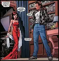 Similar to her cousin Bruce, Kate uses her status as a rich socialite to disguise her vigilante activities; however, unlike Bruce, whose playboy persona is usually depicted as a facade,[79] Kate enjoys her public lifestyle, a trait which Bruce himself admires.[80] Naturally confident and flirtatious, Kate adapted such characteristics for intel-gathering purposes as a vigilante.[31][81]