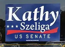 Kathy Szeliga (born October 10, 1961) is an American politician who has served as a Republican member of the Maryland House of Delegates since January 12, 2011, and as Minority Whip from 2013 to 2021. Szeliga was the Republican nominee for the United States Senate in 2016 to replace Barbara Mikulski, who retired.[1]