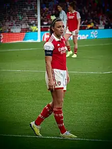 Katie Alison McCabe (born 21 September 1995) is an Irish professional footballer who plays for English Women's Super League club Arsenal[2] and captains the Republic of Ireland women's national team. Mainly a left back,[3][4] she can also operate as a left winger[5] and a left midfielder.[6]
