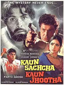Kaun Sachcha Kaun Jhootha is a 1997 Hindi-language thriller film which was released on 11 April 1997. The film was directed by Partho Ghosh. It starred Rishi Kapoor and Sridevi.[3]
