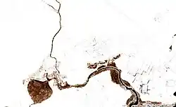 ![]() Final stretch of river Kauylzhyr and its mouth in lake Shalkar in the winter Sentinel-2 image. | |