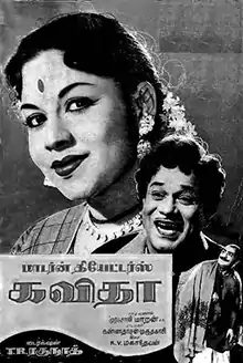Kavitha is a 1962 Indian Tamil language film directed by T. R. Raghunath. The film stars M. R. Radha and Rajasulochana. It was released on 2 September 1962.[1][2]