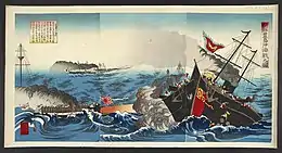 Illustration of The Battle of Pungdo (朝鮮豊島沖海戦之図) drawn by Kyōsui in 1894
