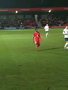 In March 2019, he was called up for the Wales C team and scored on his debut on 20 March in a 2–2 draw with England.[12]