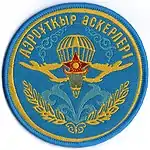 The Kazakh Air Assault Forces (Kazakh: Десанттық-шабуылдау әскерлері; Russian: Воздушно-десантные войска Казахстана) or the Airmobile Forces (Kazakh: Аэроұтқыр әскерлері; Russian: Аэромобильные войска Казахстана) are the paratrooper branch of the Armed Forces of the Republic of Kazakhstan. It falls under the subordination of the Kazakh Ground Forces and is part of the Reserve of the Supreme Commander-in-Chief of the Armed Forces.[2]
