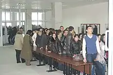 The queue at a polling station located in the campus of Al-Farabi Kazakh National University.