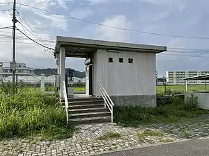 The station was closed from March 11, 2011 due to damage to the line associated with the 2011 Tōhoku earthquake and tsunami, and services were replaced by provisional bus services.[1] Services reopened on March 17, 2012 between Rikuzen-Ono and Ishinomaki; services past Rikuzen-Ono the direction of Sendai was resumed on May 30, 2015.[2]