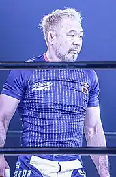 Kazushi Sakuraba (Japanese: 桜庭 和志, Sakuraba Kazushi, born July 14, 1969) is a Japanese professional wrestler, mixed martial artist and submission wrestler, currently signed to Rizin Fighting Federation[2][3][4] and Pro Wrestling Noah, where he was formerly one-half of the former GHC Tag Team Champions with Takashi Sugiura. He has also competed in traditional puroresu for New Japan Pro-Wrestling (NJPW) and shoot-style competition for UWFi and Kingdom Pro Wrestling (KPW). He has fought in MMA competition in the Ultimate Fighting Championship, Pride Fighting Championships, Hero's and Dream. He is known as the Gracie Hunter[5][6][7][8] or the Gracie Killer[9][10][11][12] due to his wins over four members of the famed Gracie family: Royler Gracie, Renzo Gracie, Ryan Gracie, and Royce Gracie. Sakuraba is famous for beating 15 champions of different top MMA organizations; opponents who were often many weight-classes above him.