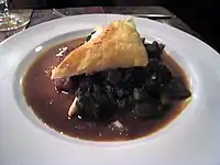 Kedjenou (also known as Kedjenou poulet and Kedjenou de Poulet)[1] is a spicy stew that is slow-cooked in a sealed canari (terra-cotta pot) over fire or coals and prepared with chicken or guinea hen and vegetables.[2] It is a traditional and popular dish of the cuisine of Côte d'Ivoire.[3]