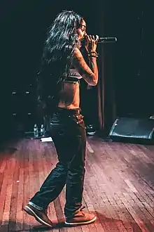 In April 2018, they spoke about their sexuality on Twitter, stating, "I'm queer. Not bi, not straight. I'm attracted to women, men, REALLY attracted to queer men, non-binary people, intersex people, trans people. lil poly pansexual".[74][75] After that, during a live stream in early 2021, Kehlani announced that they identify as a lesbian,[76] after having publicly identified as queer and pansexual in the past. They prefer polyamorous relationships.[77] They have stated that it is important for them to include female pronouns in their music.[78]