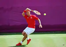 Kei Nishikori (錦織 圭, Nishikori Kei, [ɲiɕi̥koꜜɾi keꜜː]; born 29 December 1989) is a Japanese professional tennis player. He is the second male Japanese player to have been ranked in the top 5 in singles (after Jiro Sato), and the only one to do so in the Open Era. Nishikori first reached his career-high singles ranking of world No. 4 in March 2015. Nishikori has won 6 ATP Tour 500 titles, 6 ATP Tour 250 titles and was runner-up at the 2014 US Open,[4] making him the first man representing an Asian country to reach a major singles final.[lower-roman 1] He also became the first man from Asia to qualify for the ATP Finals, and reached the semifinals in 2014 and 2016.[5] In addition, Nishikori defeated Rafael Nadal to win the bronze medal at the 2016 Summer Olympics, bringing Japan its first Olympic tennis medal in 96 years.[6] He holds the record for the highest win percentage in matches extending to five sets, with a record of 27–7 and a win percentage of 79.4%.[7]