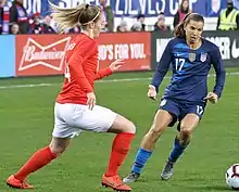 Walsh (left) and Tobin Heath in an England v United States match in 2019