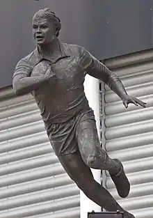 Following a supporters' poll featuring the likes of Tom van Vollenhoven and Alex Murphy, Cunningham was chosen to be cast as a bronze statue outside of Langtree Park.[29] The statue was unveiled on Chalon Way opposite the Glass House pub in March 2010[30] and was relocated to the stadium following its completion in October 2011.[31]