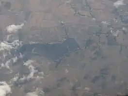 The streambed underlying the reservoir has an elevation of 2,245 feet (684 m).[3] Since the reservoir's initial flooding, sedimentation has gradually accumulated on the reservoir bottom thus raising its elevation.[12]