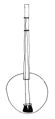 The instrument consists of a round bowl covered with camel, goat or zebra-hide soundboard, and a neck to support the strings.[1][2]