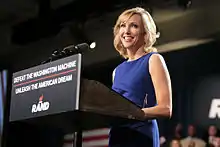 In late September 2015, Paul filed for her husband to appear on the ballot in the South Carolina primary.[17] In January 2016, after Democratic presidential candidate Hillary Clinton came under criticism for her husband Bill Clinton's past relationship with White House intern Monica Lewinsky, Paul said in an interview that Bill Clinton was "fair game" since he had become involved with his wife's campaign and that while it may not have been just, "I think we all know that's the way it is in politics now".[18] It was reported that she would be joining her husband in touring Iowa that month in an effort to garner more support for his campaign.[19]