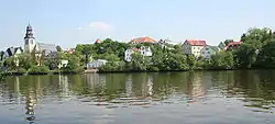 Kelsterbach (German: [ˈkɛl.stɐˌbax] ) is a town in Groß-Gerau district in Hessen, Germany and part of the Frankfurt Rhein-Main urban area. It is located on Frankfurt's southwestern outskirts at a bend on the left bank of the river Main, right where a small brook, called the Kelster (and Bach means "brook") joins the river.