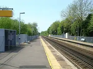 Kemsing railway station serves Kemsing in Kent, England, although the station is located on the other side of the M26 motorway to the village. It is 26 miles 79 chains (43.4 km) down the line from London Victoria. Train services are provided by Southeastern.