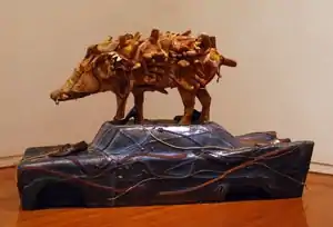 Ken Dawson Little is a modernist San Antonio-based sculptor who was born in Canyon, Texas in 1947. After graduating from Texas Tech University in 1970 with a BFA in painting, he received an MFA from the University of Utah in 1972. There, his interest in painting waned in favor of ceramics. In 1988, he settled in San Antonio, Texas, and his interests shifted to bronze animal masks. Little later shifted to steel sculpture, animal forms constructed from discarded shoes and human forms decoupaged with American paper money. Fury, in the collection of the Honolulu Museum of Art is an example of this stage in the artist's work. He has been a professor of art at the University of Texas at San Antonio since 1988.[1]