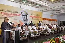 The Kengal Hanumanthaiya Memorial Trust shortly after its inception organised the 104th birth celebration of Kengal Hanumantiaiya in 2012[1] The function was presided by HE Pranab Mukherjee, the 13th President of India (then Finance Minister) in Bangalore, who called Hanumanthaiya a "towering personality and the architect of Karnataka"