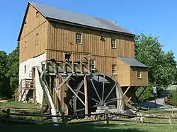 The Kennedy-Wade Mill, or Wade's Mill, is a grist mill and national historic district located in Raphine, Virginia and listed on the National Register of Historic Places.[3] It was originally built c. 1750 by Captain Joseph Kennedy. In 1846 the mill was sold by the Kennedy family to Henry B. Jones, who expanded and improved the mill.[3] After passing to other owners in 1867, the mill was damaged by fire in 1873.[3] It was rebuilt and leased to (and later bought by) James F. Wade, and put back into use in November 1882.[3] The Wade family continued to operate it for four generations. It was bought in 1991 by Jim Young, and is still functioning today. The mill grinds flour using millstones and a 21-foot overshot water wheel. The flour is shipped to restaurants and livestock farmers.