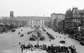 In 1903, the Federal Building was constructed facing City Hall. From 1920 to 1948, the plaza was circled by trolley tracks.[3]