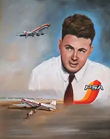 Using the lessons learned from Friedkin Airlines and receiving advice from a travel agent, he and his wife Jean Friedkin created an airline called Pacific Southwest Airlines in 1949.[3] The airline was a success, and gave Friedkin Aeronautics Inc. profit. Friedkin died at the age of 47 in 1962 of a cerebral hemorrhage. His wife, Jean, died the following year. After he died, J. Floyd Andrews became the president of PSA. His only child, Thomas Friedkin, lived to see PSA purchased by USAir.[4]
