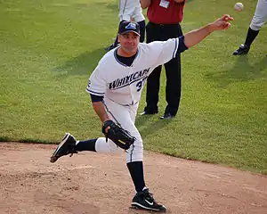 Kenneth Scott Rogers (born November 10, 1964) is an American former Major League Baseball (MLB) pitcher, with a 20-year career (1989 to 2008) for six different teams. He won the 1996 World Series with the New York Yankees over the Atlanta Braves, and played in the 2006 World Series with the Detroit Tigers. In addition to being known for his fielding (winning five Gold Glove Awards), he pitched the 14th perfect game in MLB history. In 2008, he was the oldest baseball player in the American League.