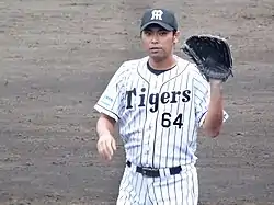 He got 10 appearances in 2011, but recorded no wins and a 3.50 ERA. He spent the next year pitching in the Western League (farm), where he finished with a 5-1 record and 2.61 ERA out of 22 games. He got a handful of appearances with the main squad in the next two seasons, but he spent the majority in the farm. After making just 22 appearances in 4 years for Orix, he was traded to the Hanshin Tigers at the end of the 2014 season for pitcher Hirokazu Shiranita[1] as Orix was short of starters and Hanshin was short of relievers.[2] He inherited Shiranita's former jersey number, 64.[3]