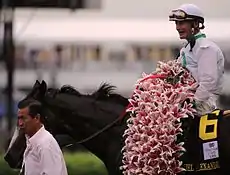 The winner of the Kentucky Oaks is also presented with a Garland of Lilies draped around the filly's withers.
