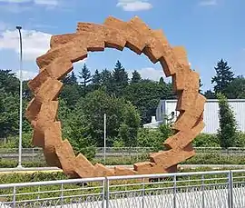 Kerf is an outdoor series of two pigmented cast concrete sculptures by Thomas Sayre, installed at the MAX Orange Line's Southeast Tacoma/Johnson Creek station in the southeast Portland, Oregon portion of the Ardenwald-Johnson Creek neighborhood, which straddles the border between Portland (and Multnomah County) and Milwaukie, Oregon (and Clackamas County).