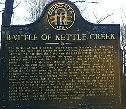 Kettle Creek Battlefield is a 256-acre (104 ha) historic site outside Washington, Georgia in Wilkes County, Georgia, at the location of the Battle of Kettle Creek, in 1779, in the American Revolutionary War. It was added to the National Register of Historic Places on June 26, 1975. In January 2021 the Kettle Creek Battlefield became affiliated with the National Park Service. It is located nine miles (14 km) southwest of Washington off Courtground Road.