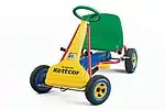 The Kettcar was first introduced to the world in 1962 as Kettler's first pedal vehicle. Similar to a bicycle, the pedals turn the wheels over a chain. The Kettcar, however, has four wheels and requires no balancing to ride. Since its debut, Kettler has made many different varieties of the Kettcar and has sold more than 15 million of them worldwide.[6]