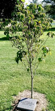 A tree on the St. Francis de Sales High School campus, planted in memory of Granata, who was a graduate of the school.