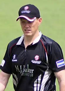 O'Brien's performance at the World Cup attracted the attention of Gloucestershire County Cricket Club and he secured a contract with the club for 2011.[36] John Bracewell, Gloucestershire's coach, viewed O'Brien as primarily a one-day player and believed his style of batting was best suited to situations where the team needed to increase their run-rate. He made his debut for Gloucestershire on 15 May, scoring three runs from four balls in a CB40 match against Glamorgan.[37] In June he scored his first century in twenty20 cricket, beating his previous highest score of 39.[38] His innings of 119 runs against Middlesex came from 52 deliveries and helped lift Gloucestershire to the highest total in the history of domestic T20 cricket. O'Brien shared an opening stand of 192 with Hamish Marshall, who also scored a century, and the pair set a record partnership for any wicket in the format.(But this record was broken in just a few years) When O'Brien was finally dismissed, he received a standing ovation.[39] Both Kevin O'Brien and Hamish Marshall became the first pair of batsmen to score centuries in a single T20.[40][41][42][43]