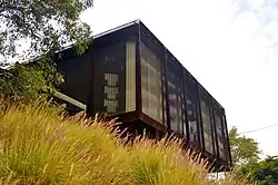 Between 2009 and 2013, a freestanding 24sqm studio was added. It is designed in dialog with but also in opposition to the original house; as stated on Godsell's website, they are 'connected by their common materiality of oxidised steel and recycled hardwood flooring, but are physically separate', and is ' deliberately solid and dark in comparison to the light filled and screened earlier house', and 'vertical, where the existing house is horizontal.'[11][12] The addition won the 2014 National Award for Small Projects from the Australian Institute of Architects.[13]